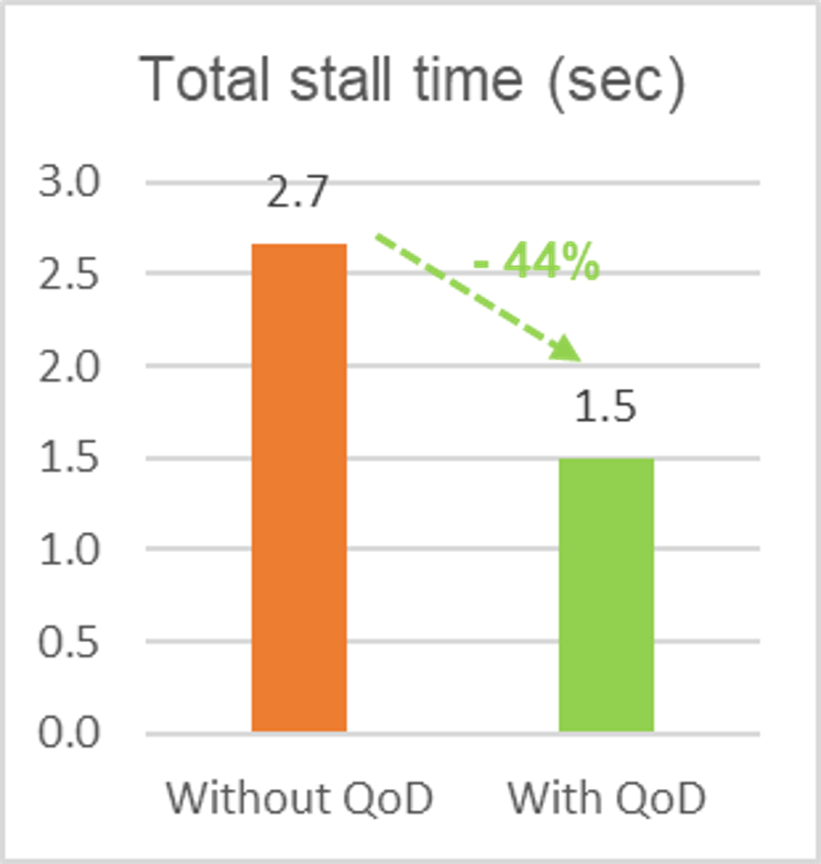 The three main video quality of experience (QoE) indicators were significantly improved, with a marginal compromise on the average video bitrate. The combination of Broadpeak’s streaming server’s Bandwidth Boost Intelligence feature with Orange’s QoD network API proved its effectiveness in improving video streaming on 4G/5G.