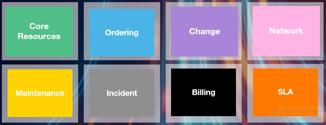 The catalogue allows a 360° navigation and covers key functions available in customer portal: ordering, incident, change, maintenance and billing (International customers only)